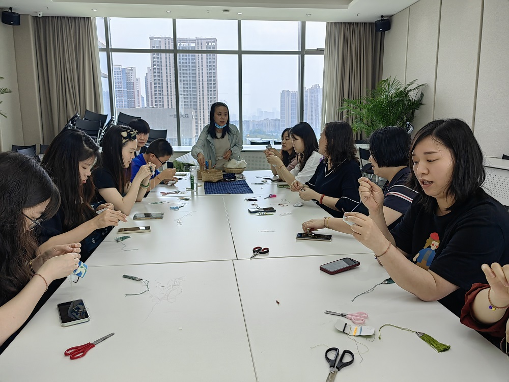 活動(dòng)共分為兩個(gè)環(huán)節(jié),第一個(gè)環(huán)節(jié)是趣味手作即手工縫制端午香包,授課老師是天府新區(qū)專門從事公益活動(dòng)教學(xué)的月亮老師。為了便于大家更好、更快地熟悉縫制手法,老師先教大家制作了簡(jiǎn)單的五彩手鏈,算是活動(dòng)開始前的熱身環(huán)節(jié),但是因?yàn)榇蠹移饺绽锸止せ罱佑|不多,一條小小的手鏈也難倒了不少人。端午香包相比起來工序就要繁瑣很多,從吊繩固定,到七字形邊線縫制,再到裝羊毛、香料以及羊毛的再次填充,以及后續(xù)的邊線縫合和流蘇固定等,每一步都很考究。值得肯定的是,盡管過程很難,但每一個(gè)人都學(xué)得很認(rèn)真,尤其是現(xiàn)場(chǎng)參與的小朋友,在自身的努力堅(jiān)持下,最終都完成了作品,可謂成就感滿滿。