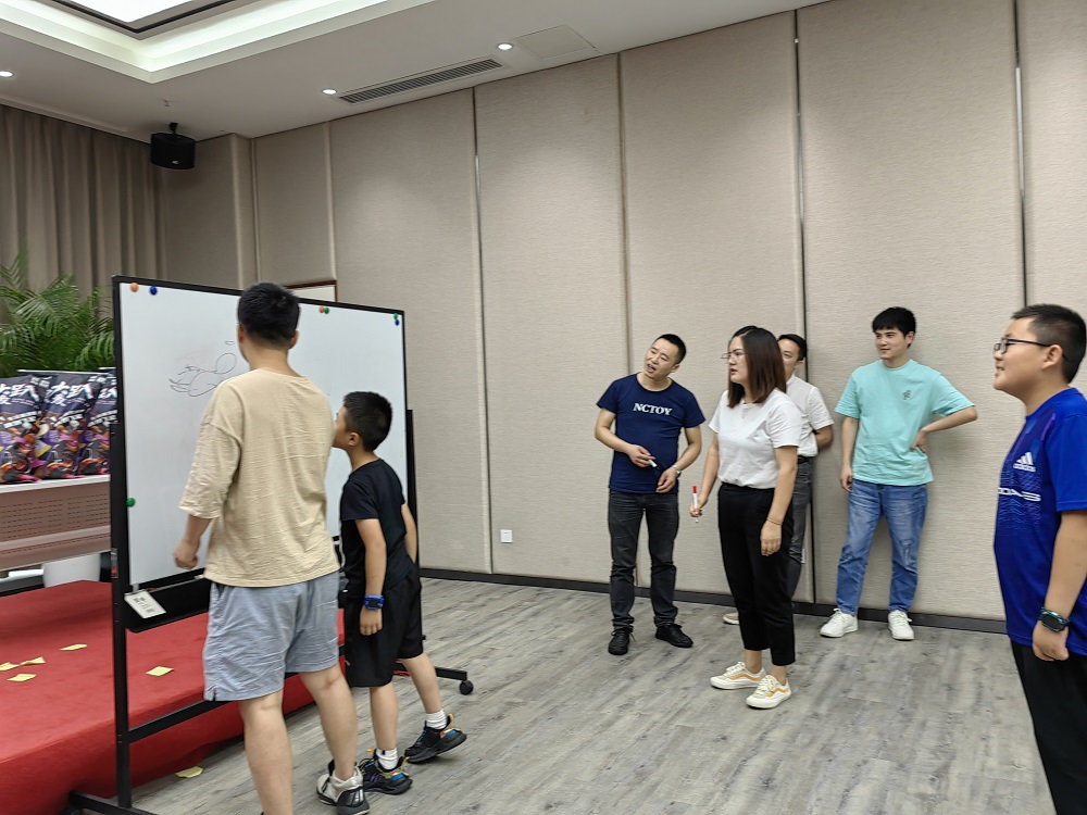 第二個(gè)環(huán)節(jié)是趣味游戲環(huán)節(jié),游戲方式主要取自當(dāng)下熱門娛樂節(jié)目《王牌對(duì)王牌》的經(jīng)典游戲,結(jié)合公司實(shí)際,進(jìn)行適當(dāng)演變而成,內(nèi)容包括“一起搖擺、‘心’火相傳、穿越‘火線’、慧眼識(shí)‘珠’、妙筆生花、火眼‘金’睛”等,均為競(jìng)技類項(xiàng)目。參與人員隨機(jī)組成兩個(gè)小組進(jìn)行PK,由工作人員在每輪游戲中對(duì)完成時(shí)間和完成結(jié)果兩個(gè)維度進(jìn)行綜合測(cè)評(píng),最終評(píng)選出優(yōu)勝組獲得工會(huì)精心準(zhǔn)備的零食大禮包。