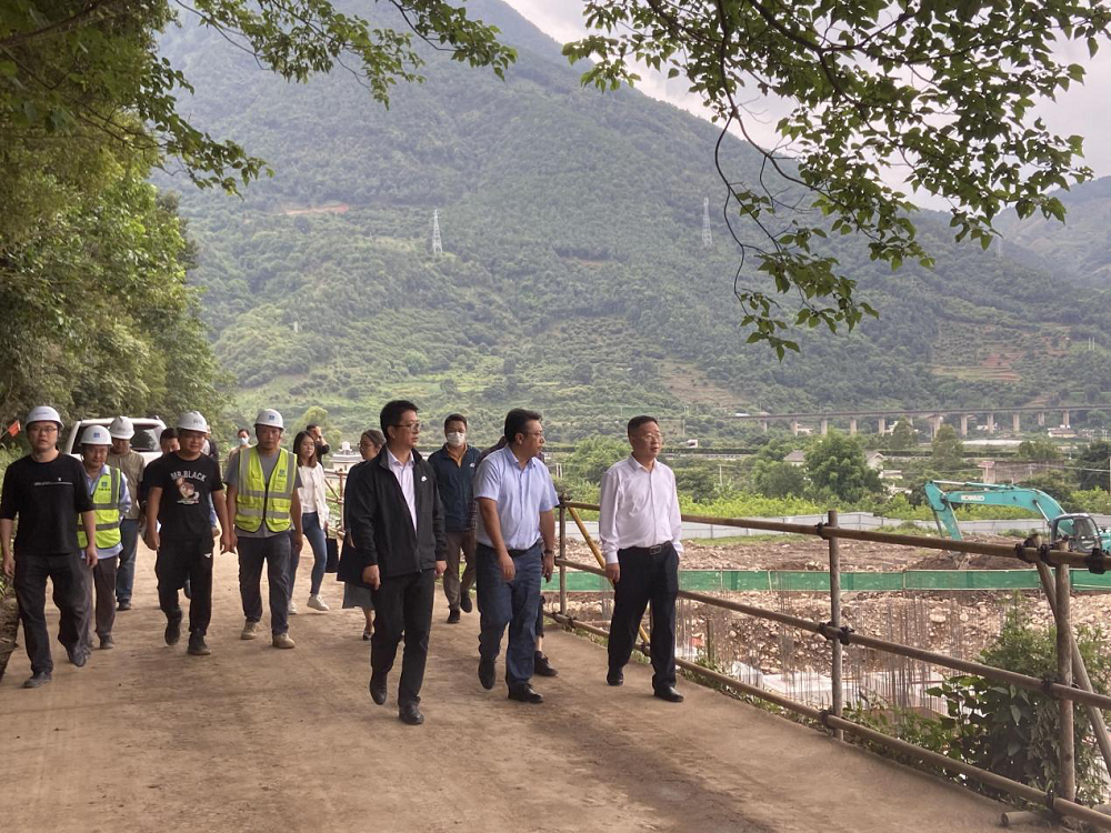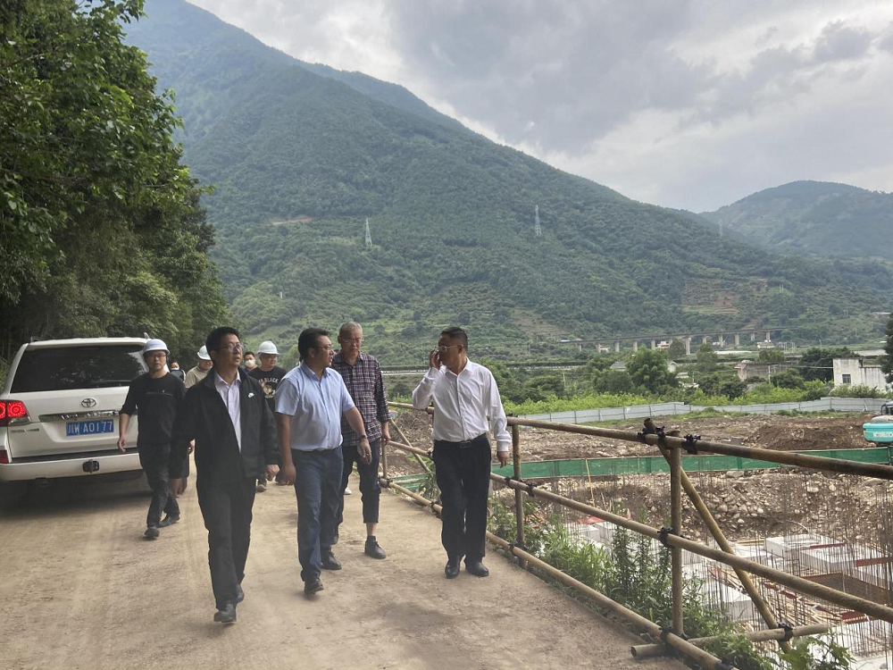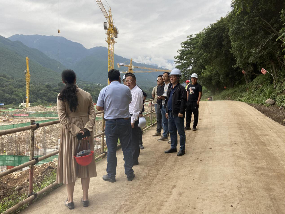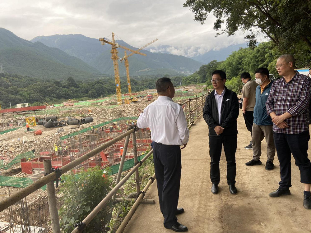 2022年6月15日下午,涼山州德昌縣縣委書記任賢明書記帶隊到NEO Gaia?;享椖繖z查工程進度。樂躍鎮黨委書記銀德志、重大項目督查辦公室、自然資源局、文體廣電旅游局、鳳棲和谷副總經理李濤與中建公司項目經理方總等公司工作人員一起熱情接待了任書記的到來,并陪同任書記一行人檢查項目工程進度。
